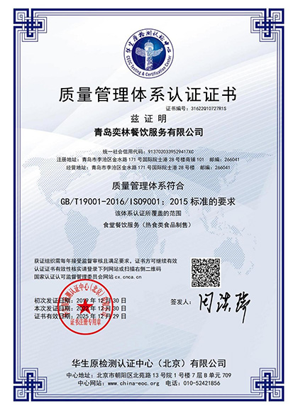 青島奕林餐飲服務(wù)有限公司成立于2014年,“奕林”出自成語“門庭赫奕,杞梓之林”代表著擁有眾多的專業(yè)人才,在行業(yè)內(nèi)有一定的聲望和地位。公司是一家基于從廚房設(shè)計(jì)、設(shè)備提供、原材料種植加工、現(xiàn)場及增值服務(wù)為一體的全產(chǎn)業(yè)鏈團(tuán)餐服務(wù)商。是青島地區(qū)食堂外包知名企業(yè)。公司先后通過IS09001質(zhì)量管理體系認(rèn)證、HACCP危害分析與關(guān)鍵控制點(diǎn)體系認(rèn)證、S014001環(huán)境管理體系認(rèn)證、ISO22000食品安全管理體系認(rèn)證和SO45001職業(yè)安全健康體系認(rèn)證。