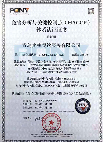 HACCP 危害分析與關(guān)鍵控制點(diǎn)體系認(rèn)證證書