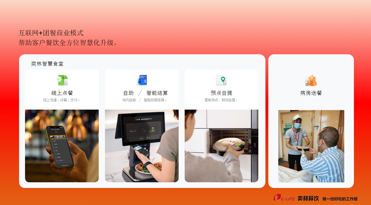 奕林在傳統(tǒng)的食堂外包行業(yè)中,充分利用互聯(lián)網(wǎng)技術(shù)運(yùn)營于企業(yè)經(jīng)營、客戶服務(wù)當(dāng)中,快捷高效的完成以客戶為中心的客戶服務(wù)模式,通過互聯(lián)網(wǎng)整合以及客戶互動(dòng)的方式提供客戶滿意度。